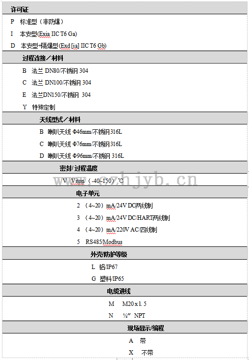 過程溫度(天線部分的溫度)                        (-40~250)℃