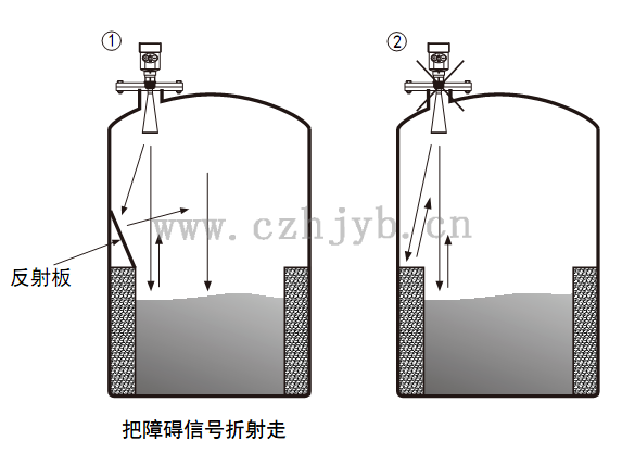 Ø 當(dāng)罐中有障礙物影響測(cè)量時(shí),要加裝反射板才能正常測(cè)量。