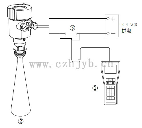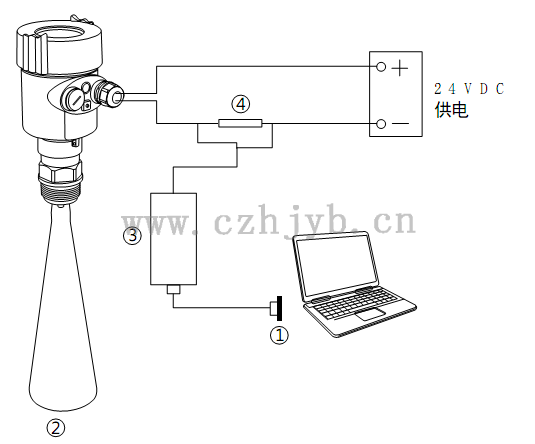 (4~20) mA/HART(兩線制) 供電電源和輸出電流信號(hào)共用一根兩芯屏蔽電纜線。具體供電電壓范圍參見技術(shù)數(shù)據(jù)。對(duì)于本安型須在供電電源與儀表之間加一個(gè)安全柵。